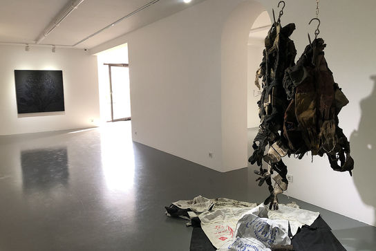 هدایی ادامه داد: شعار اینکه پول نفت سر سفرههای مردم بیاید همیشه در زندگی ما وجود داشته است. وقتی این پروژه به برلین رسید، با توجه به این شعار مقداری زیادی گونی برنج و سفرههای قلمکار جمع کرده و آنها را به صورت سفرههای بزرگ درآوردم و روی آنها با قیر و رنگهای ویترای کار کردم. یک نمایش از این مجموعه در برلین انجام شد و پس از آن به تهران آمدم و نمایشگاهی که در گالری اعتماد برگزار شد ادغامی از همین پروژهها است که در آن چیدمان، نقاشی و ویدئوهایی از اجراهای قبلی وجود دارد.