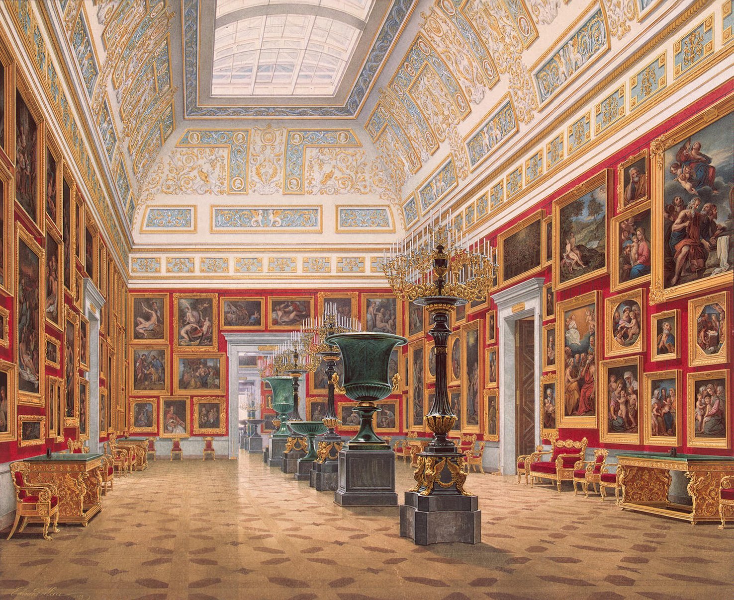 تزار نیکولاس اول برای جای دادن مجموعهٔ در حال توسعهٔ عتیقهجات یونان، روم و مصر از معمار سبک نئوکلاسیک آلمانی به نام لیو فون کلنز خواست تا بنای موزهٔ عمومی را طراحی کند. این بنا که در سال ۱۸۵۲ برای بازدید عموم گشوده شد، به احتمال بسیار اولین گالری در اروپای شرقی است که از ابتدا به همین قصد طراحی و ساخته شدهاست.