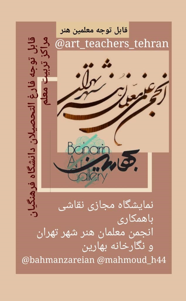 به گزارش روابط عمومی مرکز تجسمی حوزه هنری، نمایشگاه مجازی نقاشی با همکاری انجمن معلمان هنر شهرتهران و نگارخانه بهارین برگزار می شود.