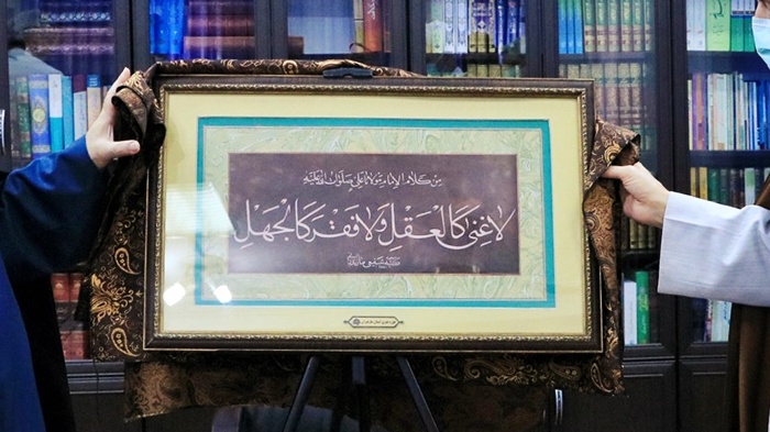 گفتنی است در ادامه برنامه، پس از شعر خوانی علیرضا دهرویه شاعر پیشکسوت استان، یک تابلو خوشنویسی خط نسخ استاد شفیعی مازندرانی مزین به حدیثی از حضرت امام علی (ع) و از تولیدات واحد هنرهای تجسمی حوزه هنری مازندران، به نمایندگی از طرف هنرمندان این مرکز به نماینده ولی فقیه هدیه شد.