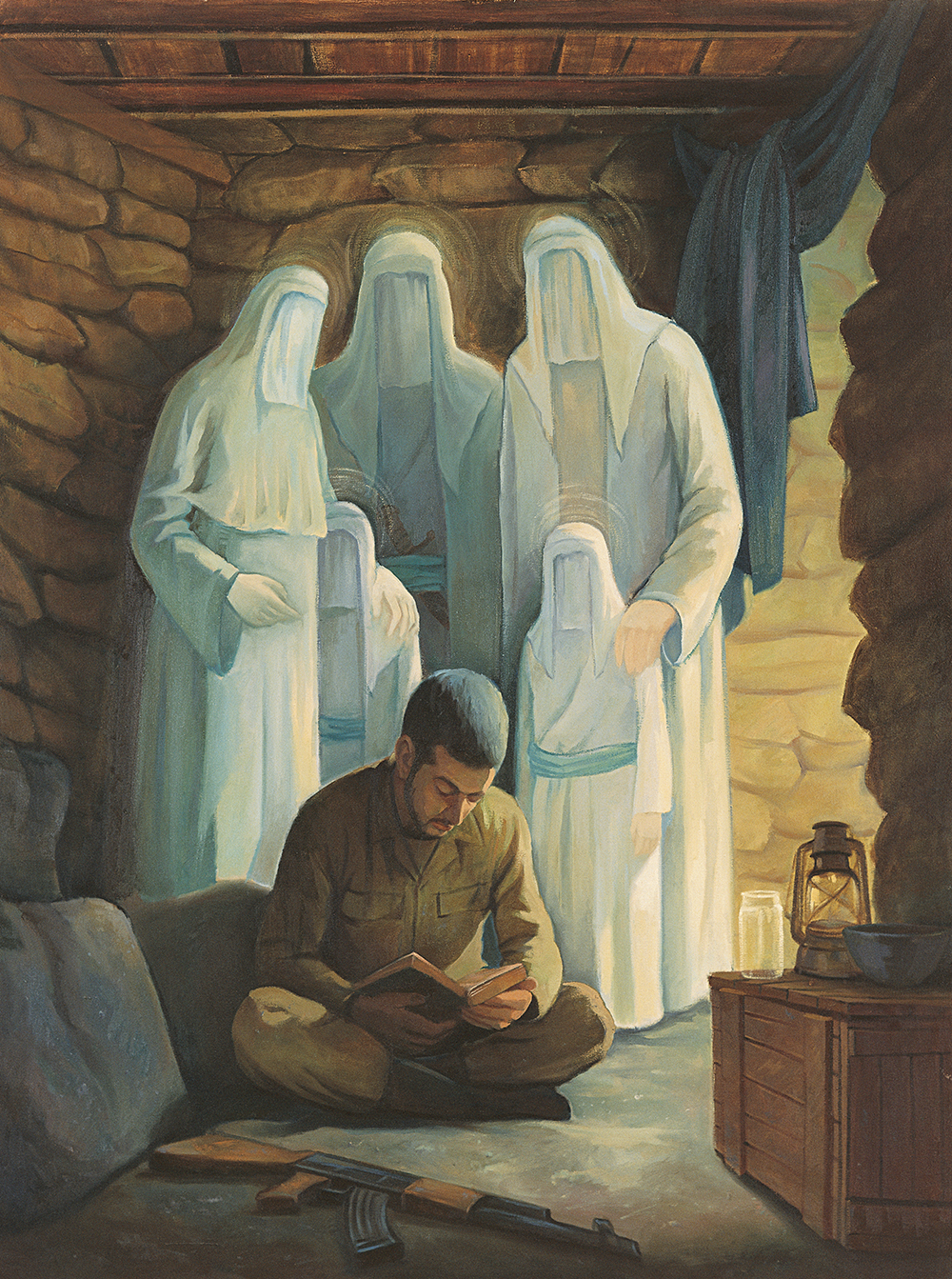 نکتهی قابل تأمل دیگر این است که نقاشان جنگ در آثار خود به دنبا نشان دادن ظاهر خشونتآمیز جنگ نبودهاند بلکه هدفشان به تصویر درآوردن روح متعالی بوده است که انسانهای عاشق پیدا کرده بودند.