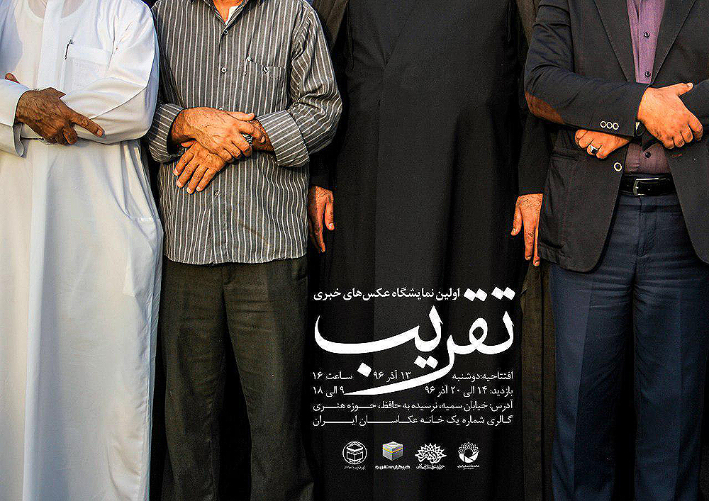 به گزارش روابط عمومی مرکز تجسمی حوزه هنری نمایشگاه عکسهای خبری «تقریب» دوشنبه، 13 آذر ماه ساعت 16 در گالری شماره یک خانه عکاسان ایران حوزه هنری افتتاح خواهد شد.