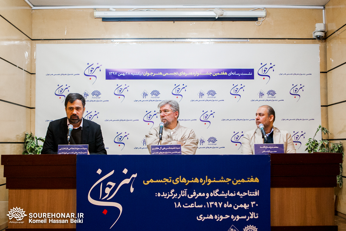به گزارش روابط عمومی مرکز تجسمی حوزه هنری، نشست خبری هفتمین جشنواره تجسمی «هنر جوان» با حضور سید مسعود شجاعی طباطبایی مدیر مرکز هنرهای تجسمی حوزه هنری، سید حمید شریفی آل هاشم دبیر هنری هفتمین جشنواره هنرهای تجسمی «هنر جوان» و جمعی از اصحاب رسانه برپا شد.