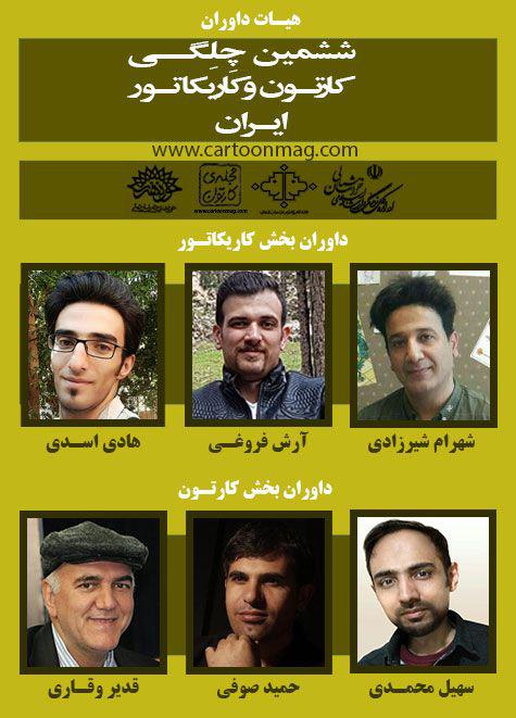 به گزارش روابط عمومی حوزه هنری خراسان شمالی، مسئول خانه کاریکاتور حوزه هنری استان گفت: آرش فروغی، شهرام شیرزادی و هادی اسدی در بخش کاریکاتور و سهیل محمدی، حمید صوفی و قدیر وقاری در بخش کارتون ششمین دوره جشنواره «چِلگی کارتون و کاریکاتور ایران» را داوری میکنند.